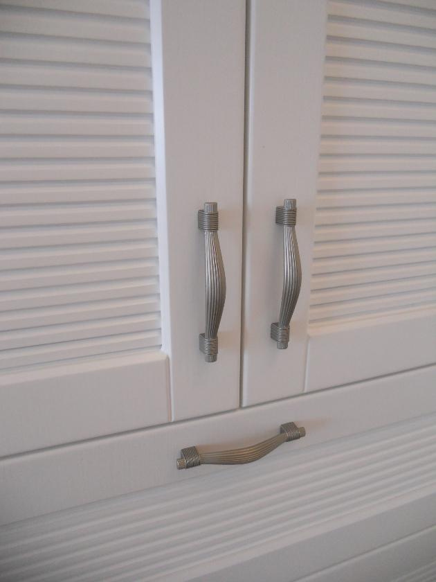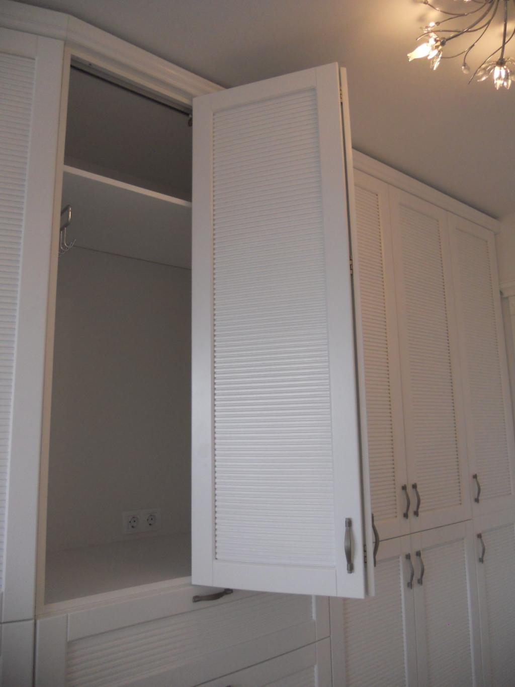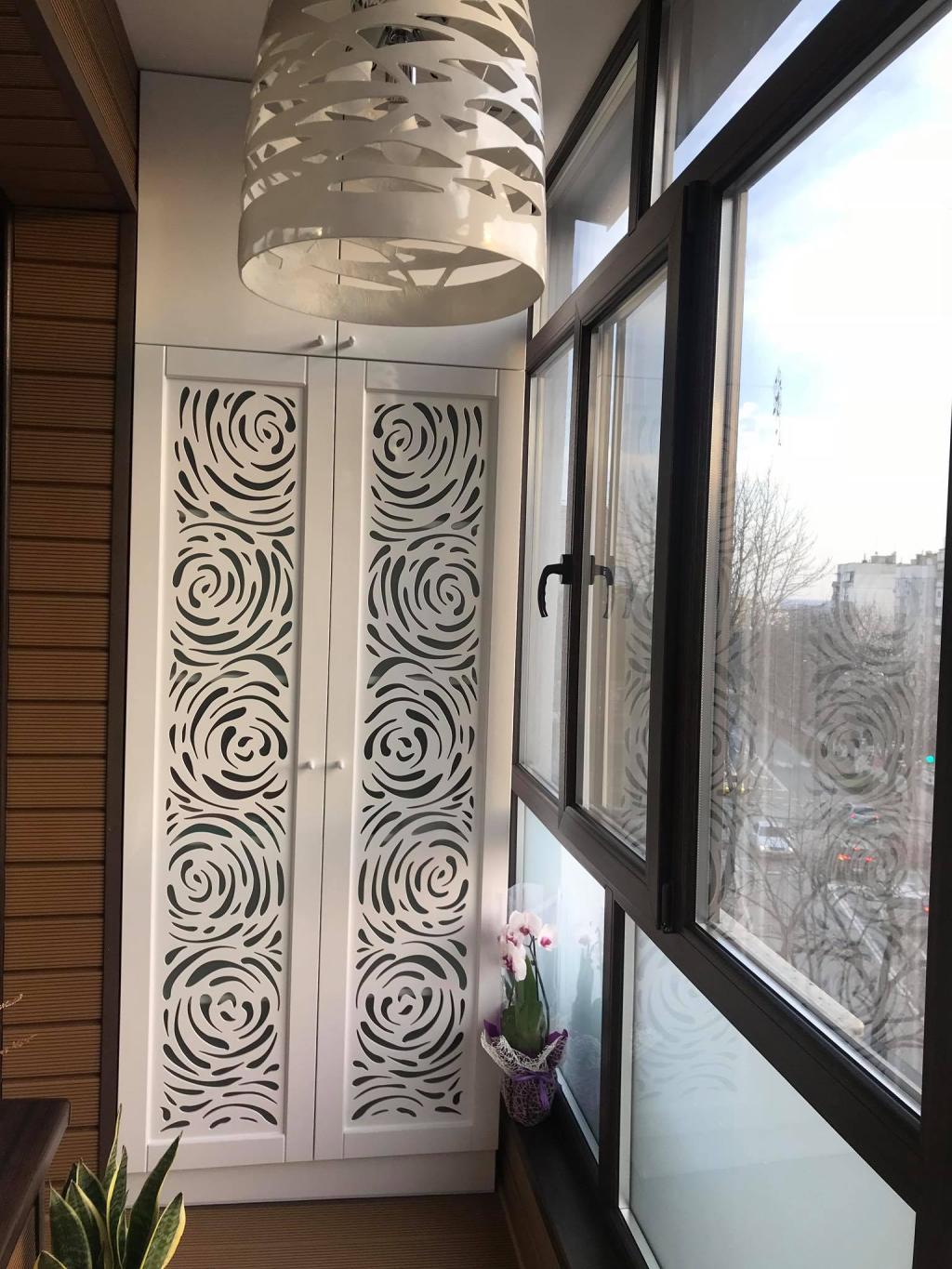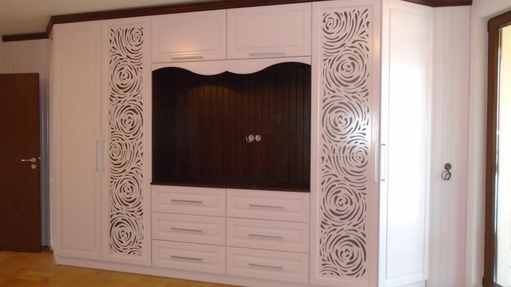 Гардероб от мдф с боя сатен и фрезовани ажурни врати.
