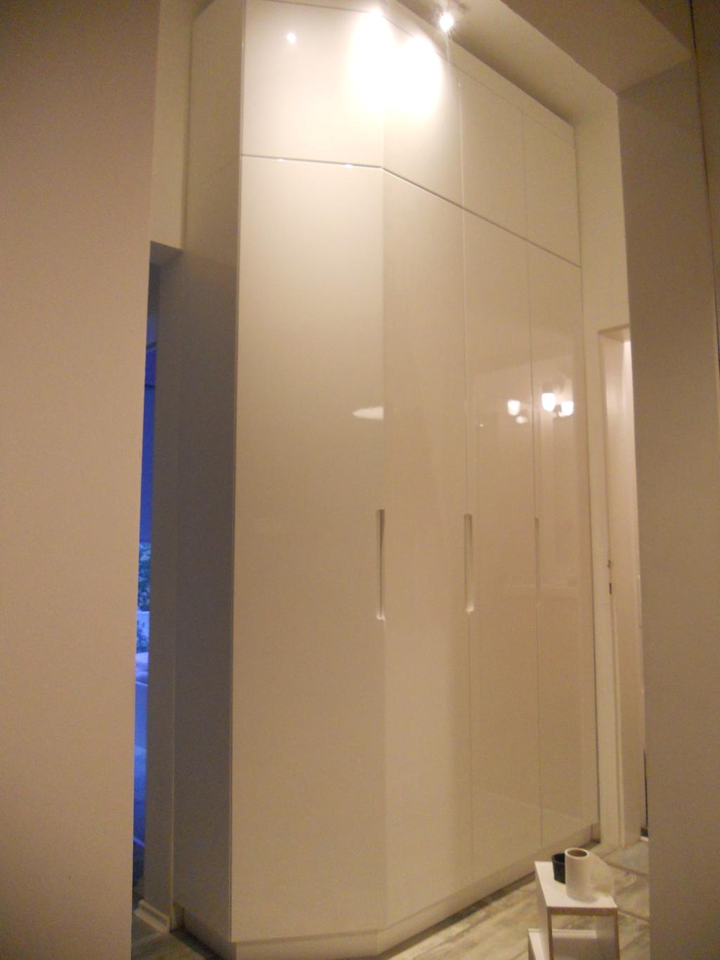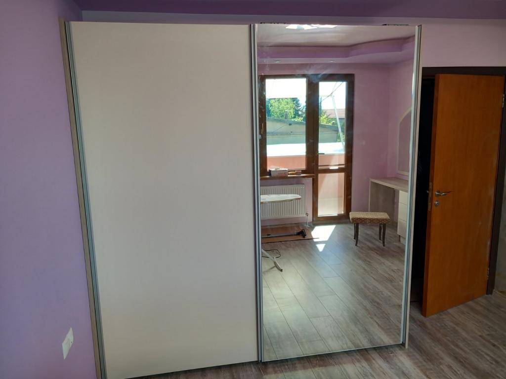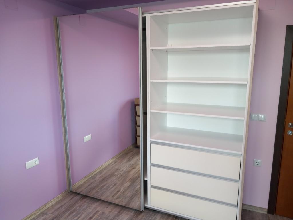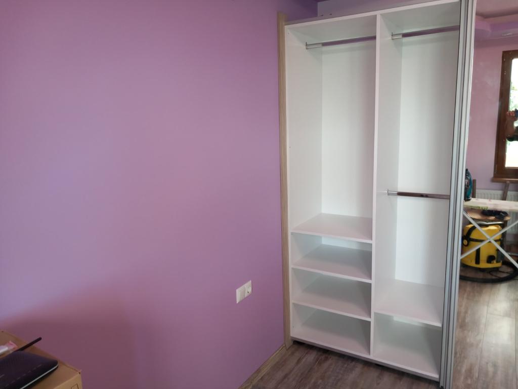 Гардероб от мдф с вкопани дръжки и с боя гланц.