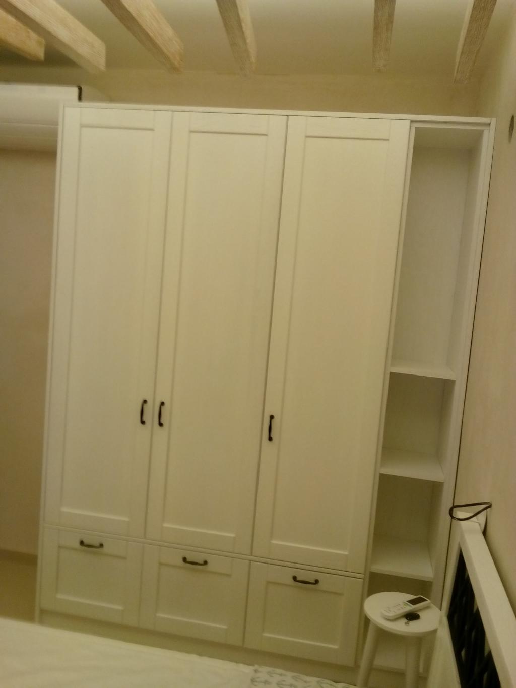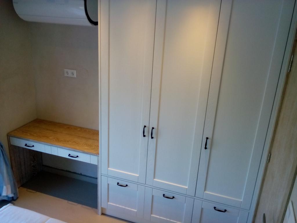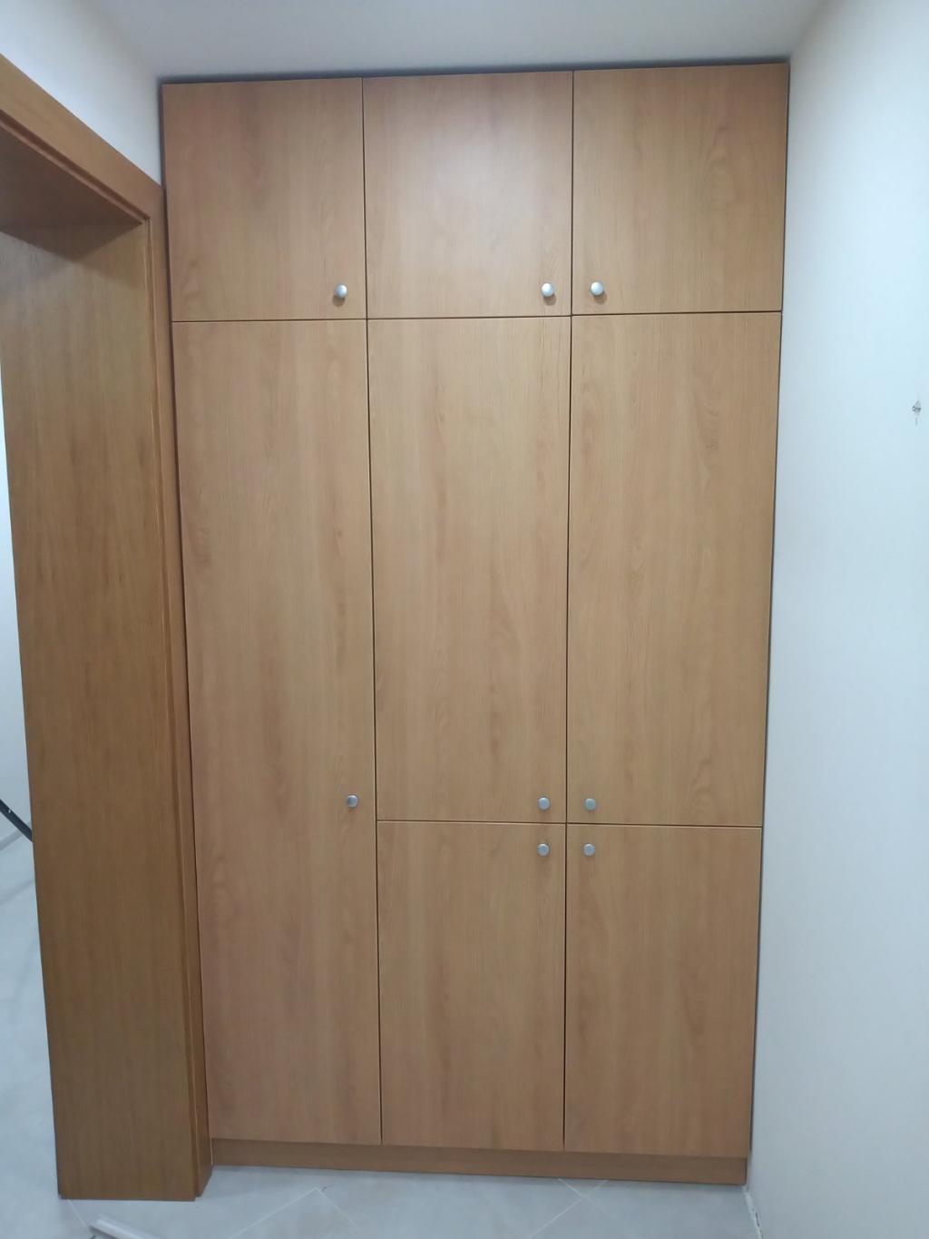Гардероб от мдф с вкопани дръжки и с боя гланц.