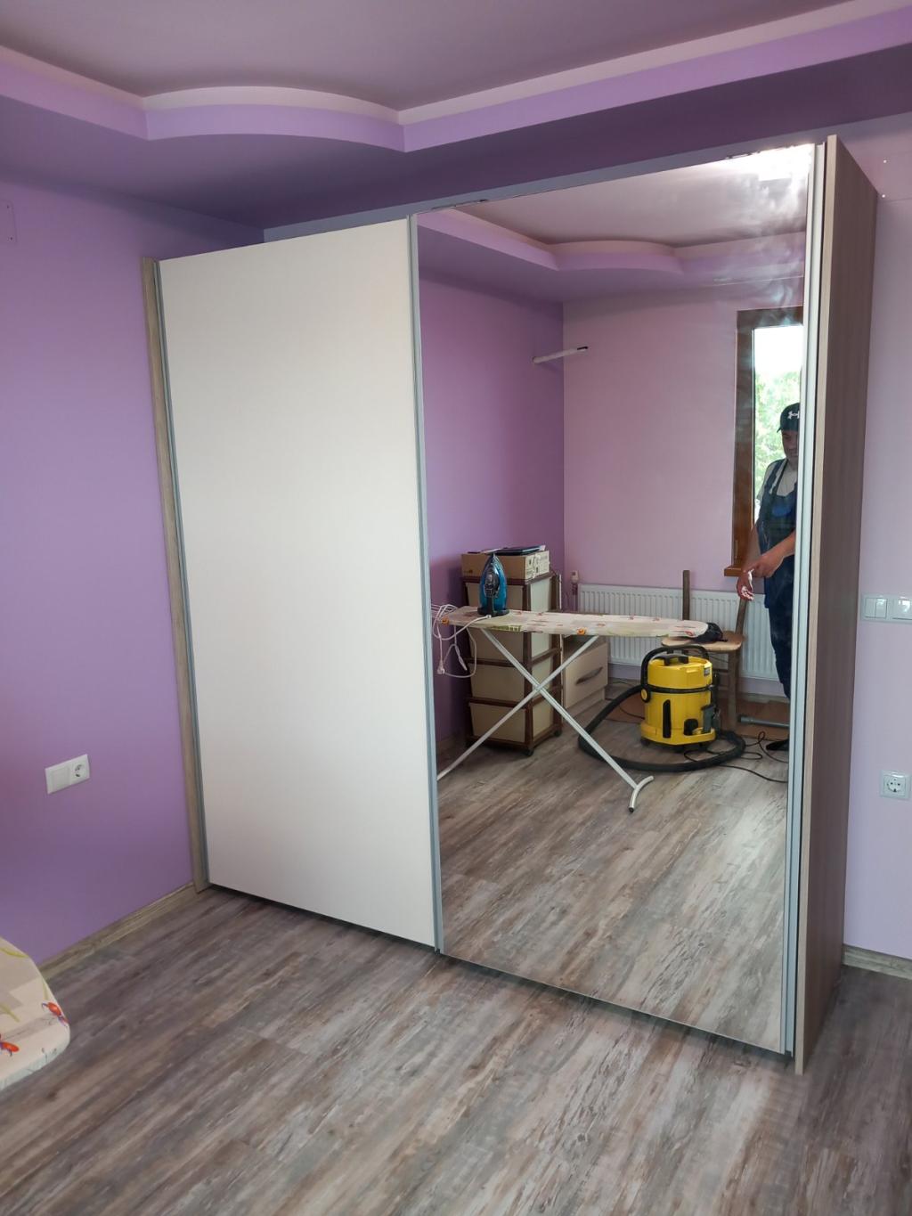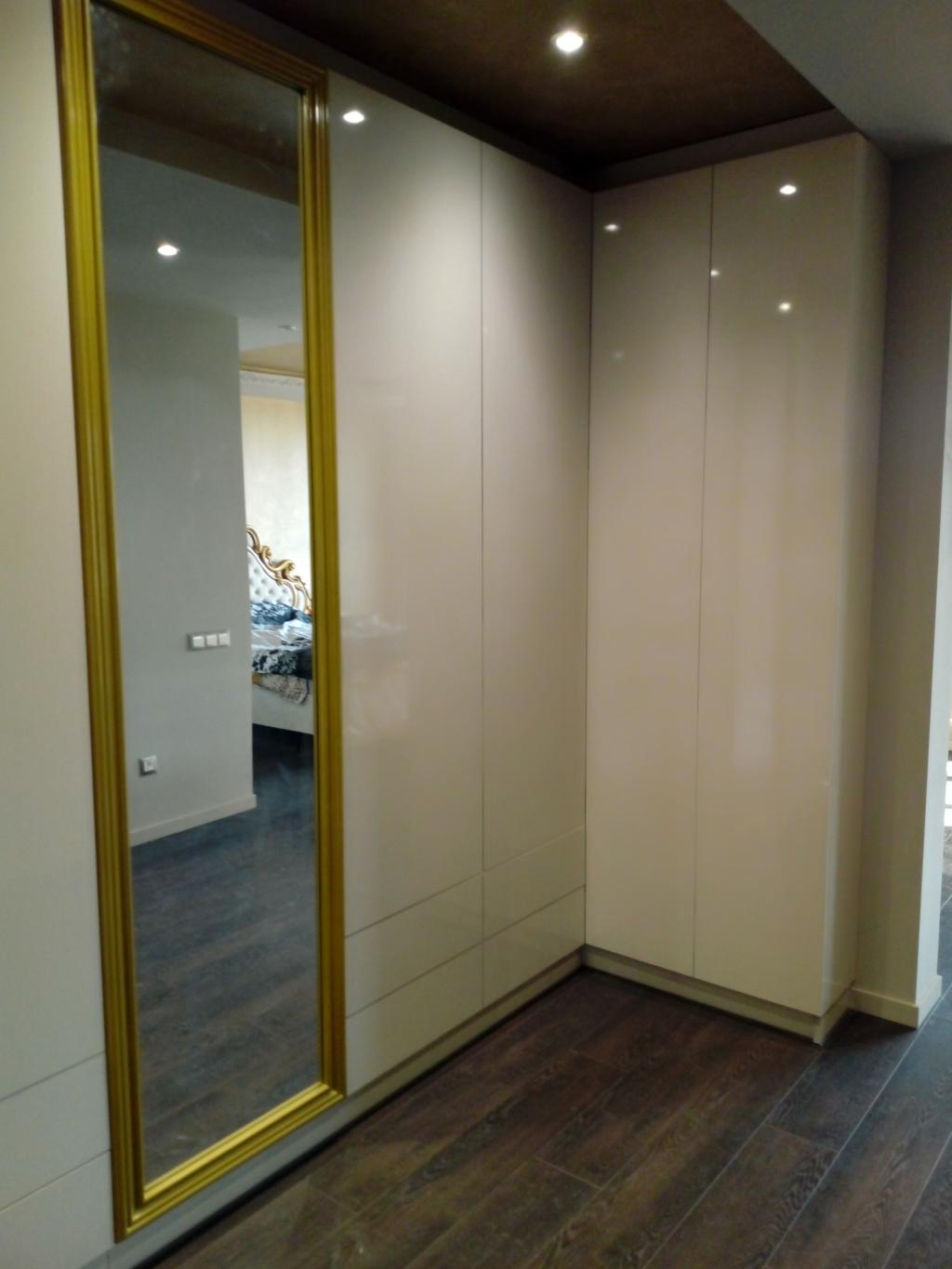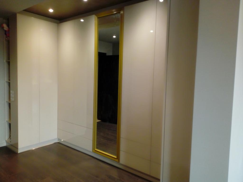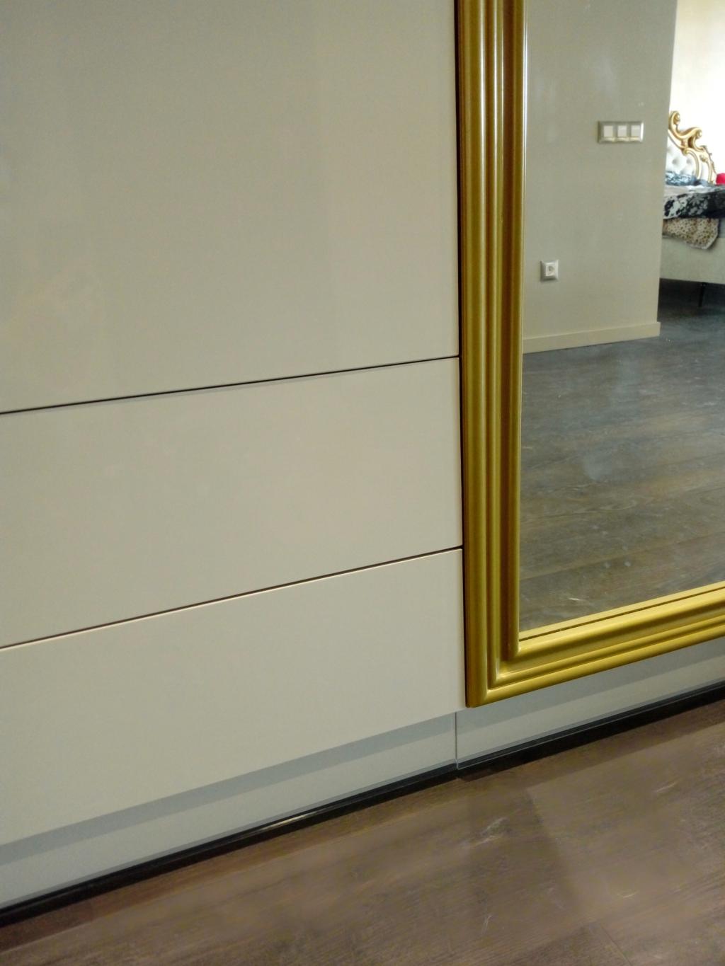 Гардероб от пдч гланц и огледална врата с масивна златна рамка.