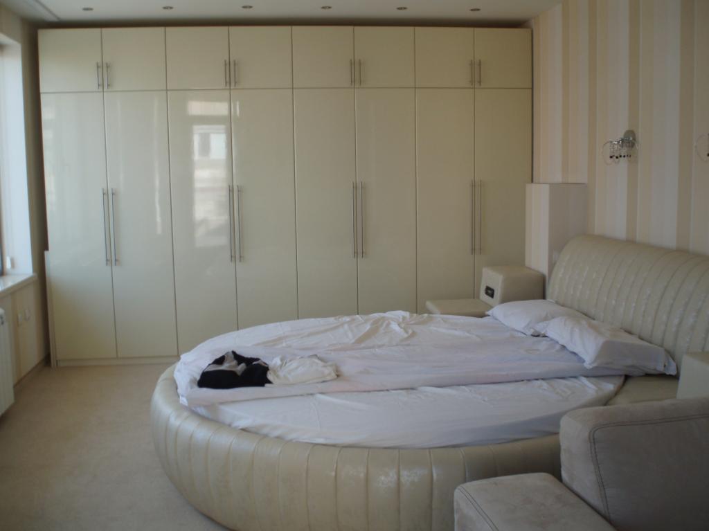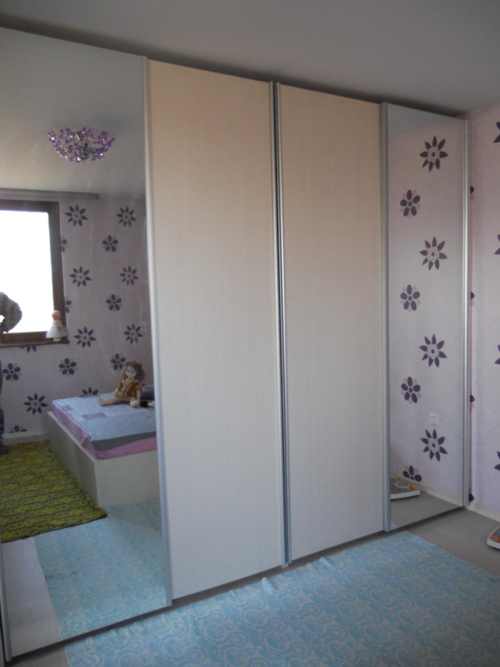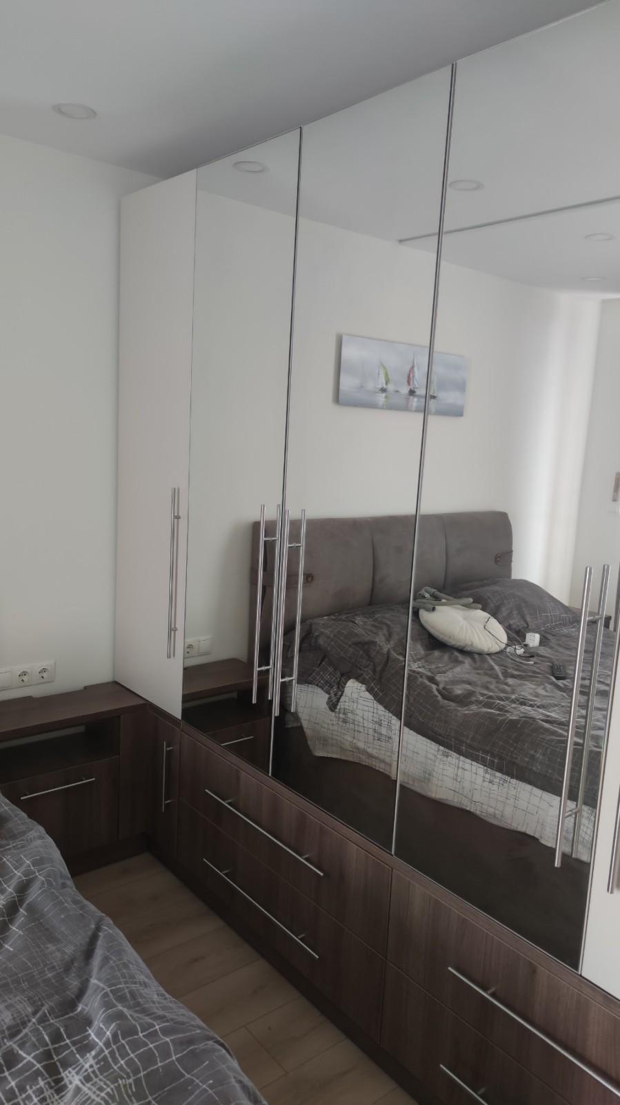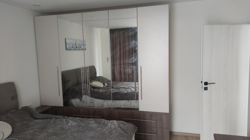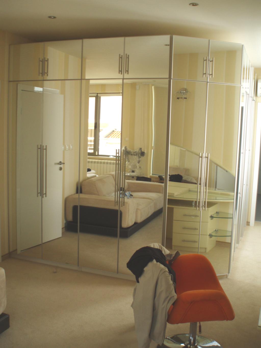 Гардероб от пдч гланц и огледална врата с масивна златна рамка.