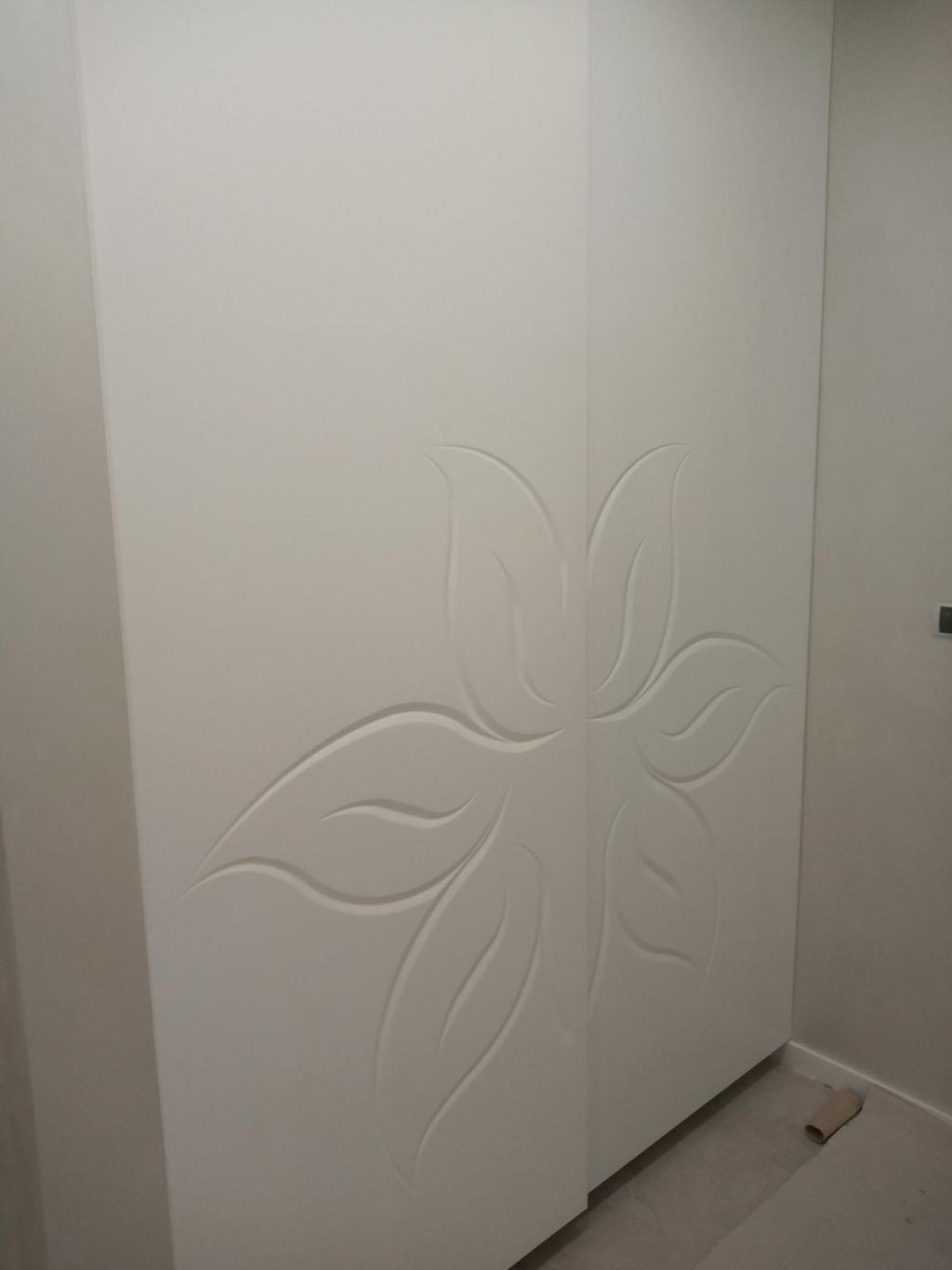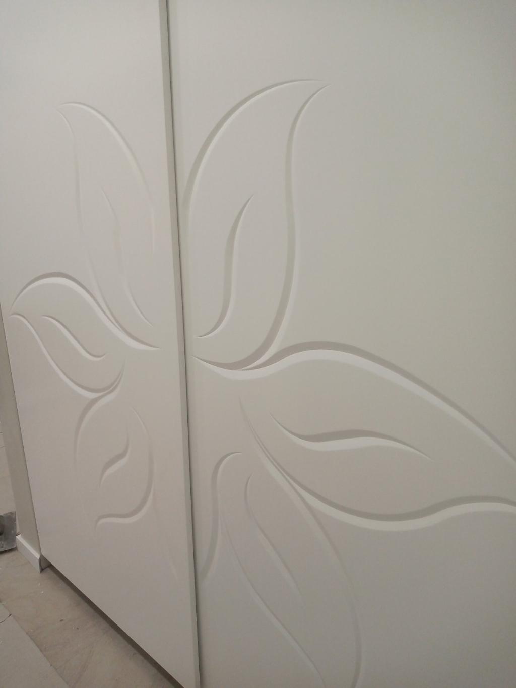 Плъзгащи врати за гардероб от мдф с фрезовано цвете.