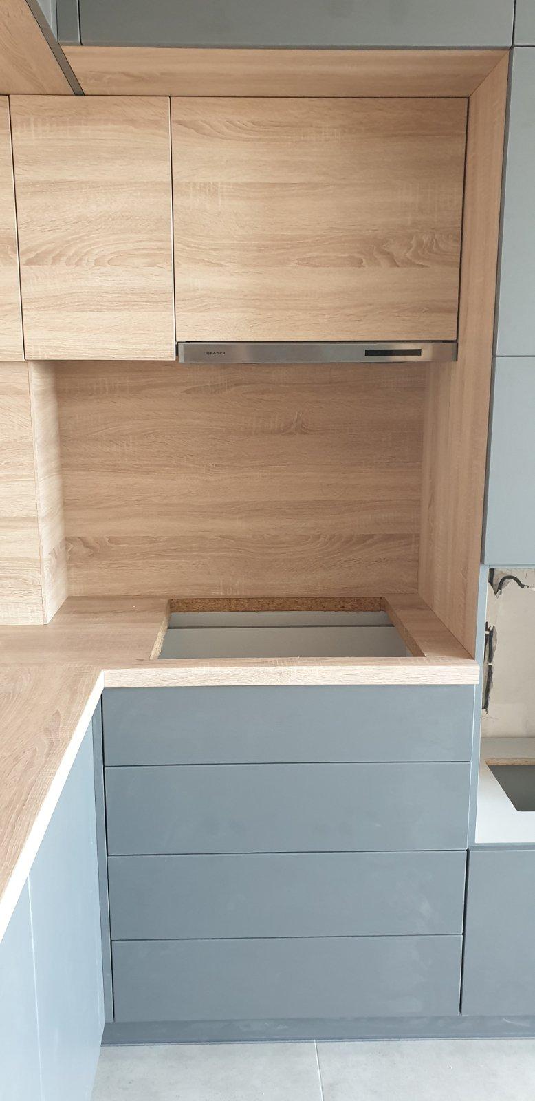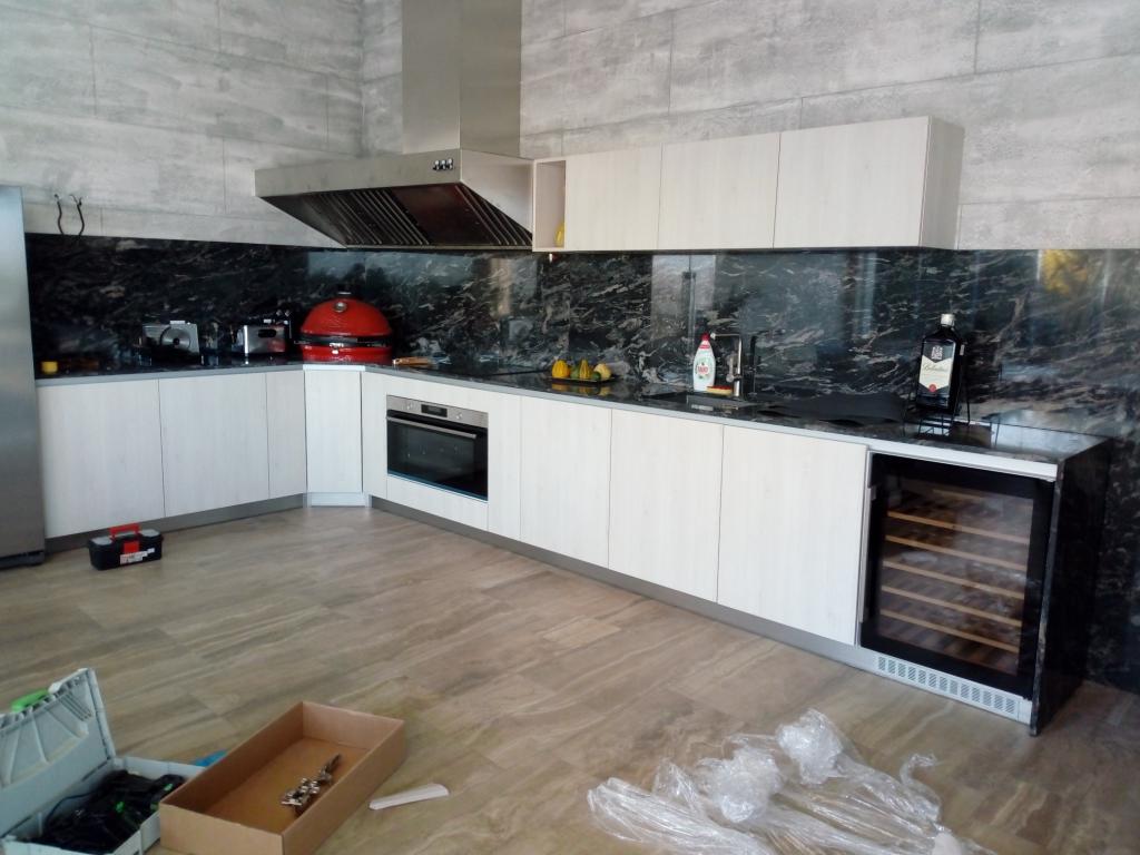 Кухня от пдч с алуминиеви профили и плот гранит.