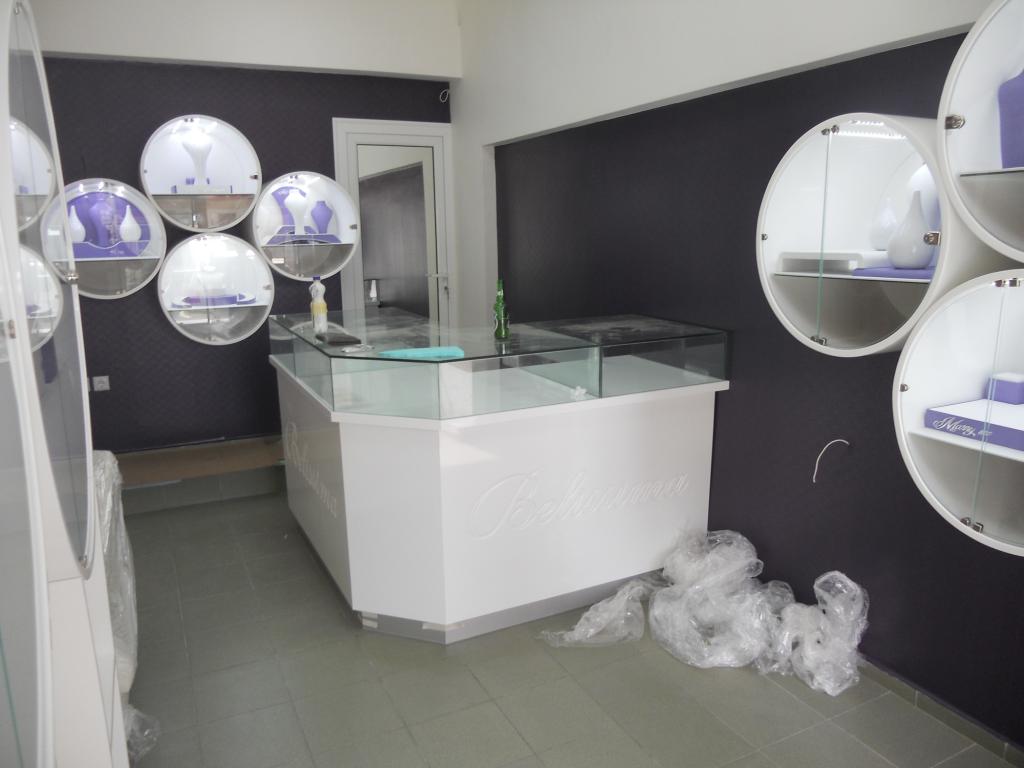 Обзавеждане за магазин от мдф с гланцово покритие.