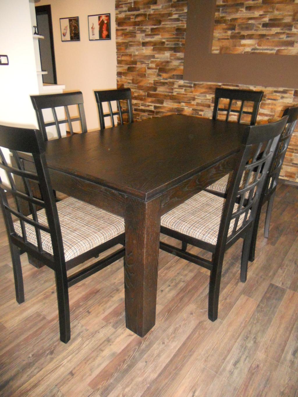 Трапезна маса от дъб и мдф с фурнир дъб и столове от бук.