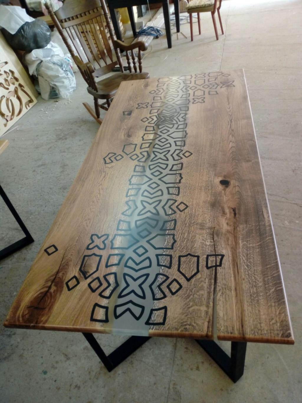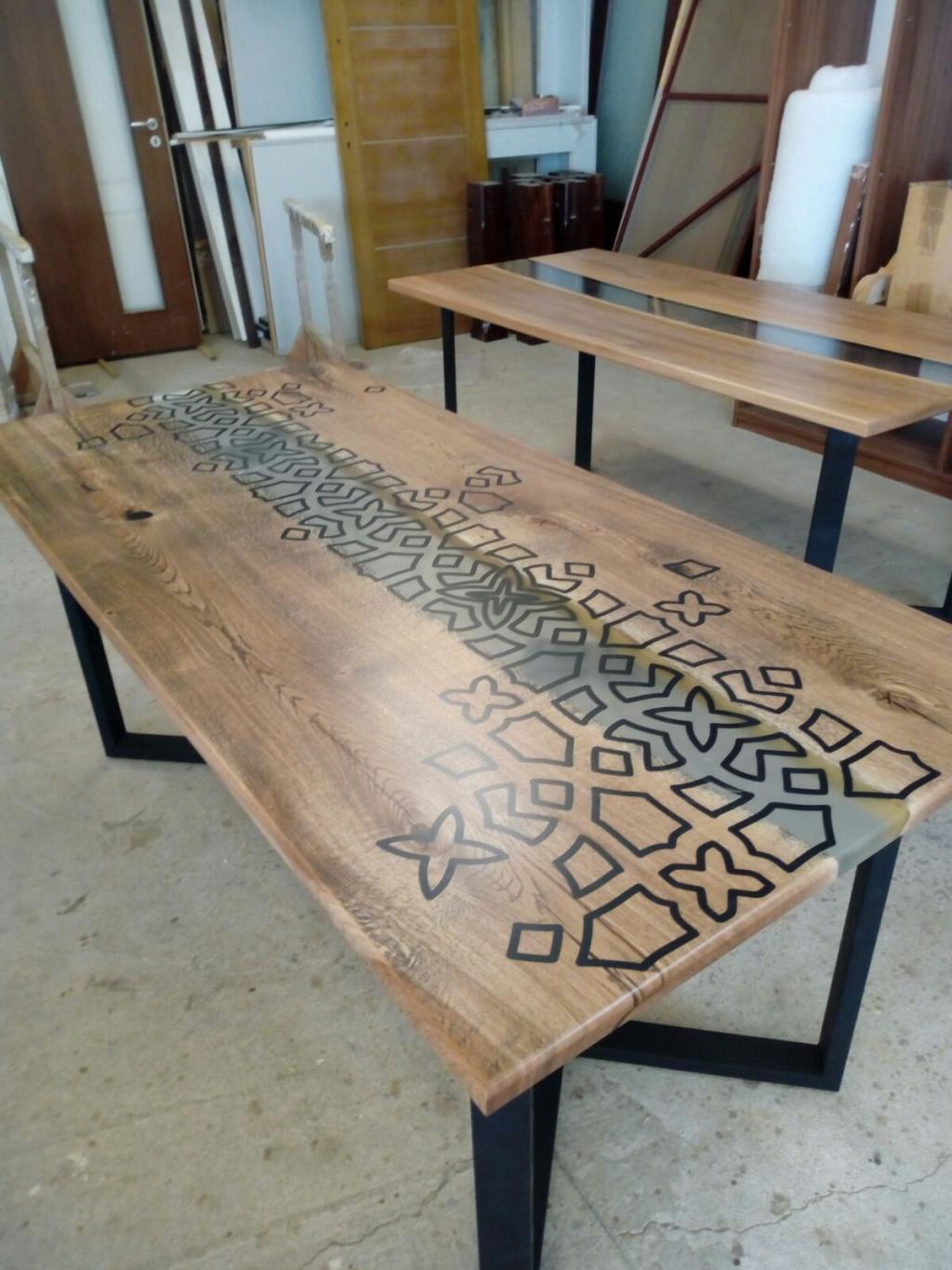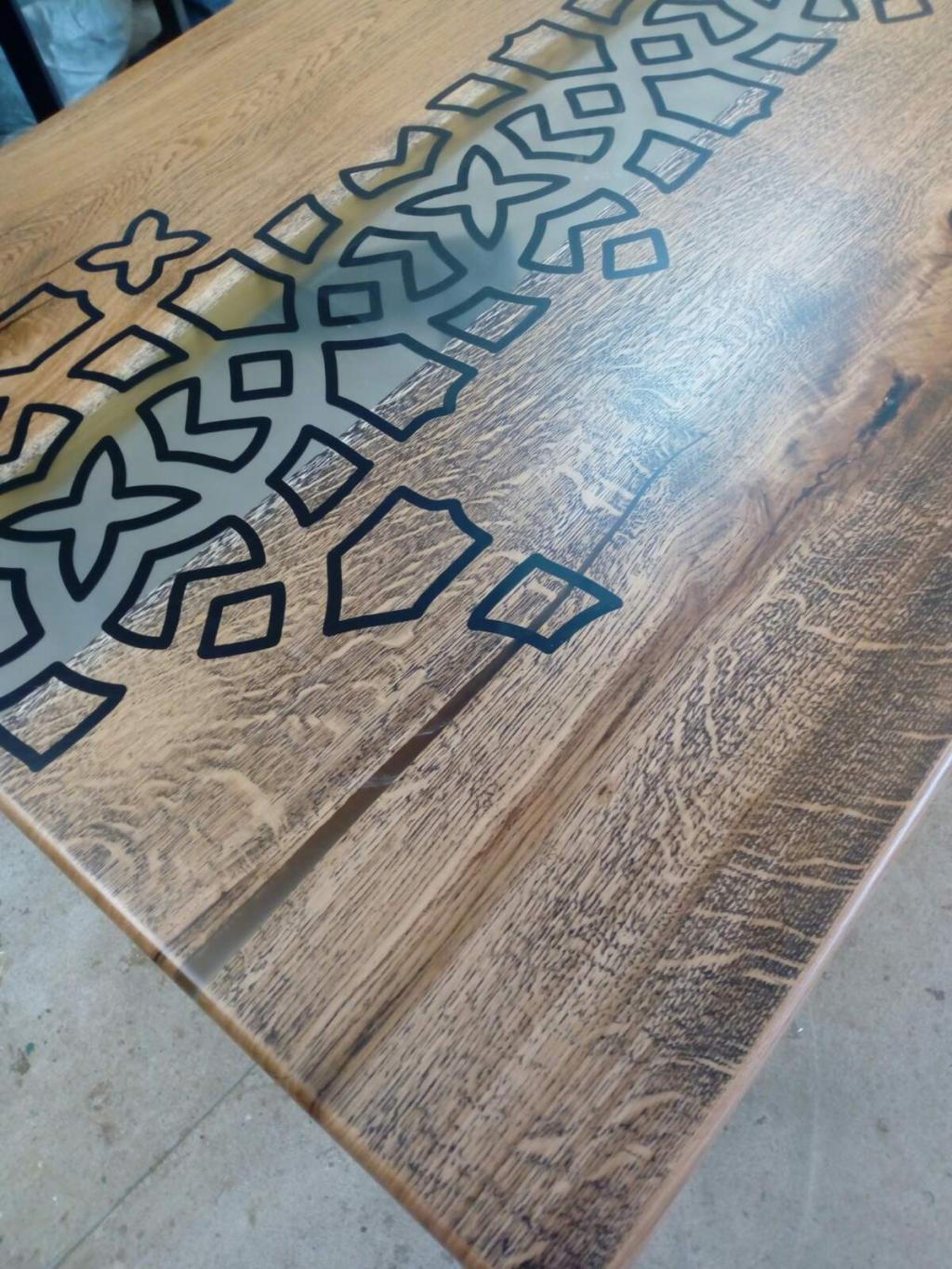 Маса от дъб и смола с орнаменти.