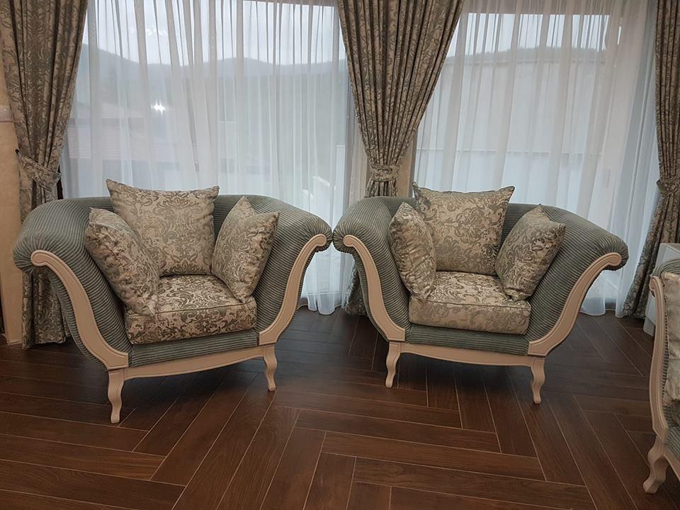 Задна табла от фурнирован мдф и сатенена тапицерия.