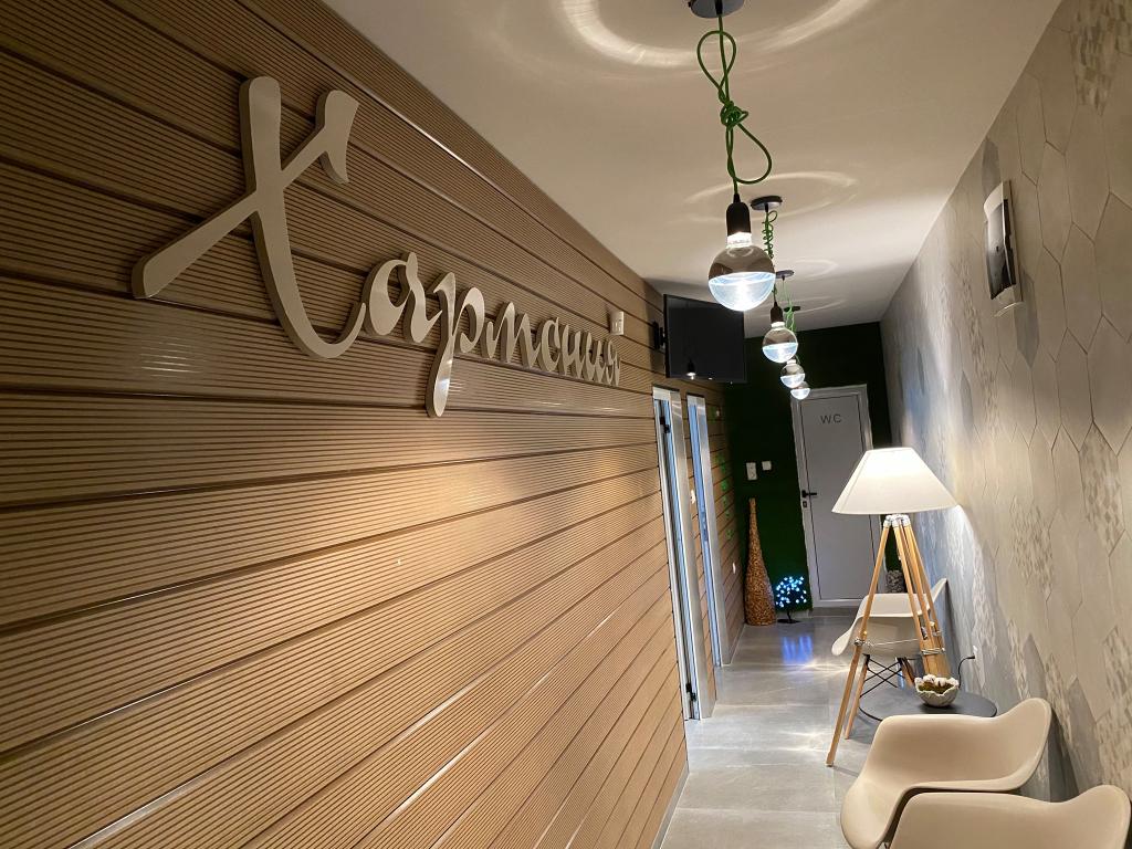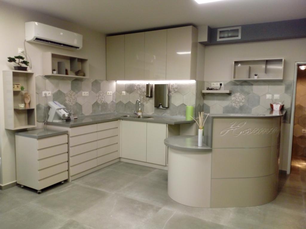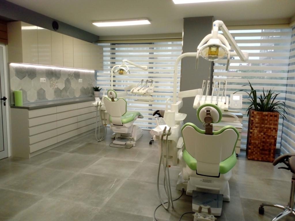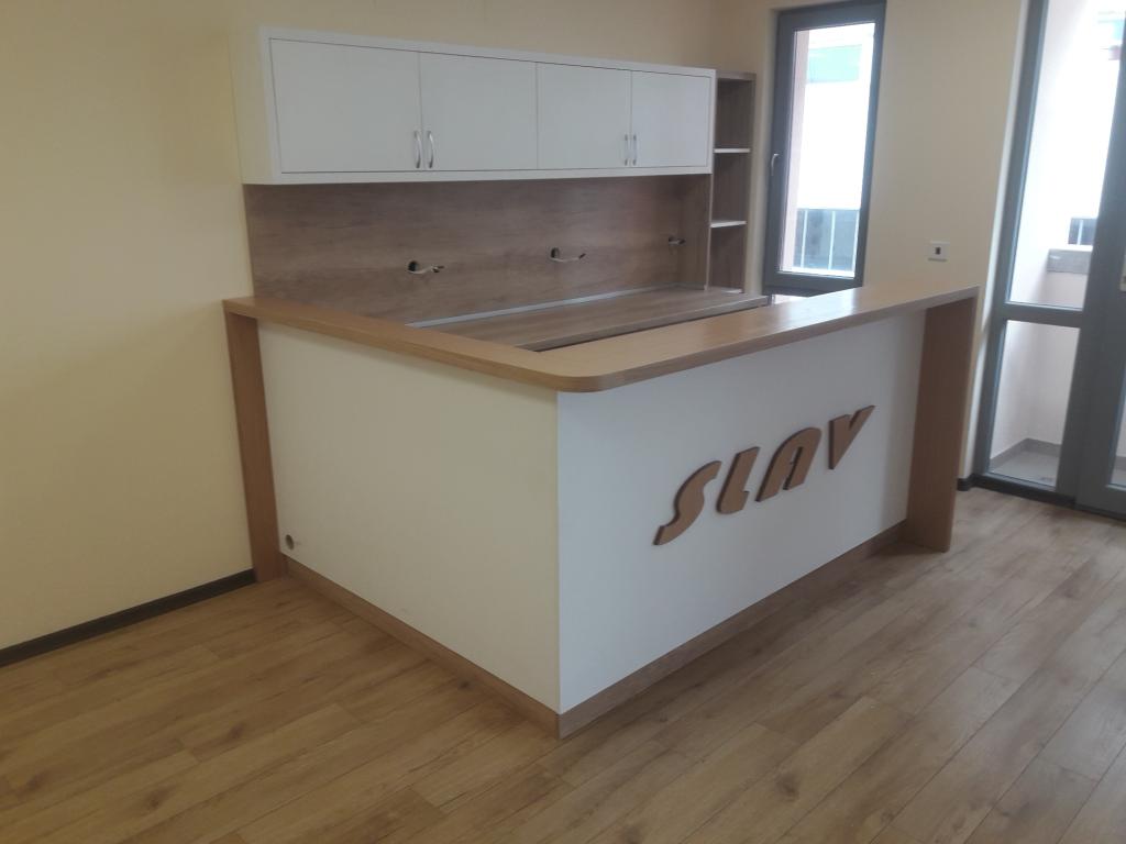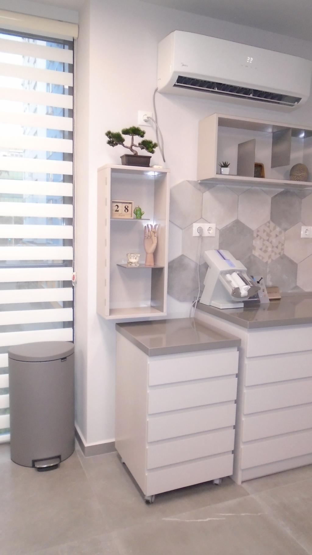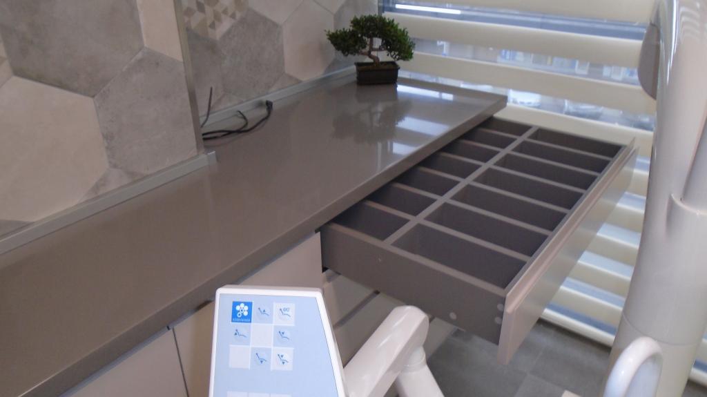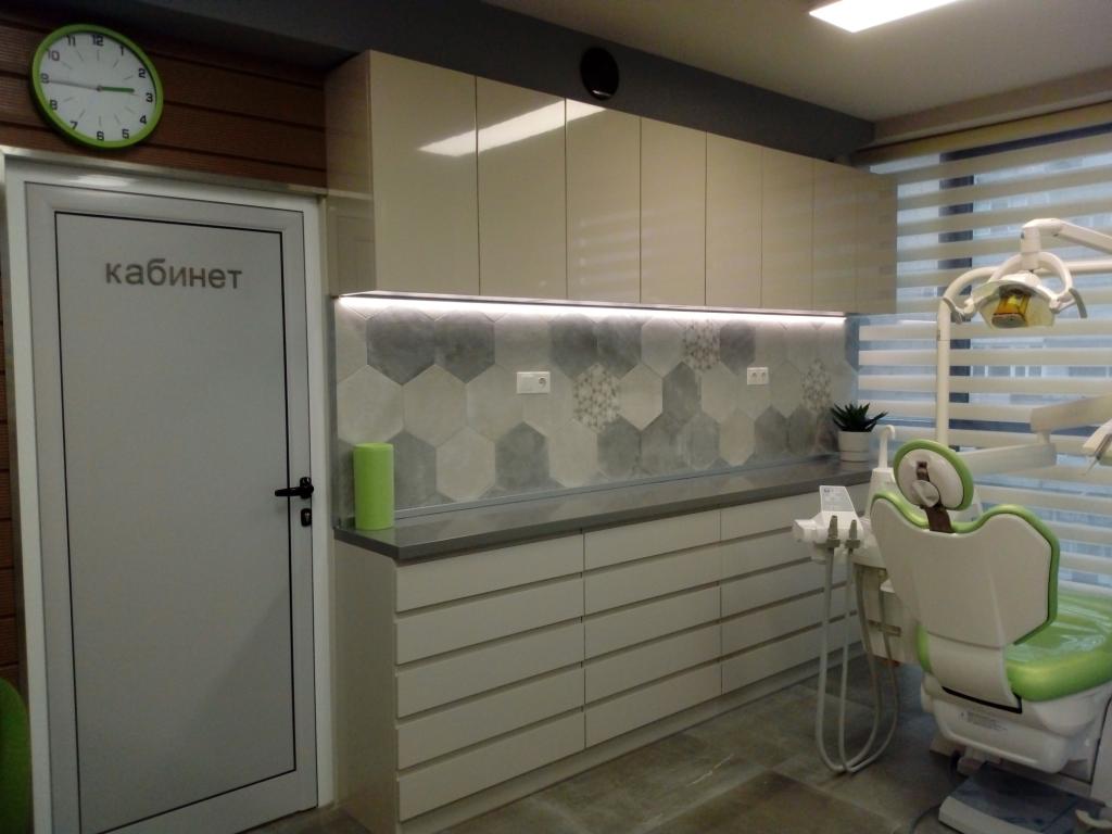 Стоматологичен кабинет изработен от мдф с фурнир дъб и мдф с боя гланц.