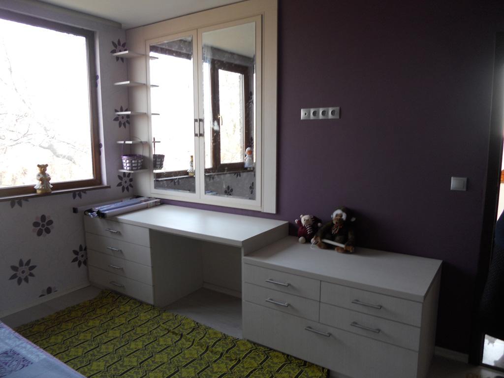 Спалнята е основно място за почивка и е хубаво да е уютна и удобна. Не претрупвайте малката стая с много мебели,но пък може да я уголемите визуално с повече огледала. Ако предпочитате скромния интериор сведете детайлите до минимум,или пък ако сте любители на кокетните мебели може да Ви предложим красиво обзавеждане в класически стил.Но каквото и да изберете трябва да е максимално функционално и съобразено с нуждите Ви- удобно разпределение на гардероба, функционален скрин, а ако разполагате с място и тоалетка.Мястото под леглото също може да се използва за съхранение посредством чекмеджета или повдигащ механизъм за матарака.