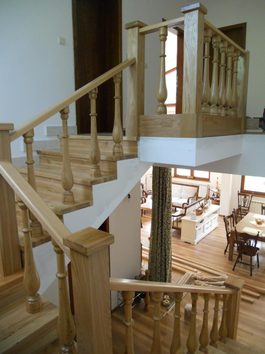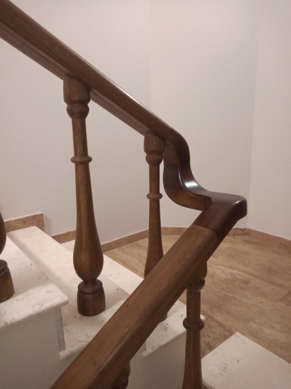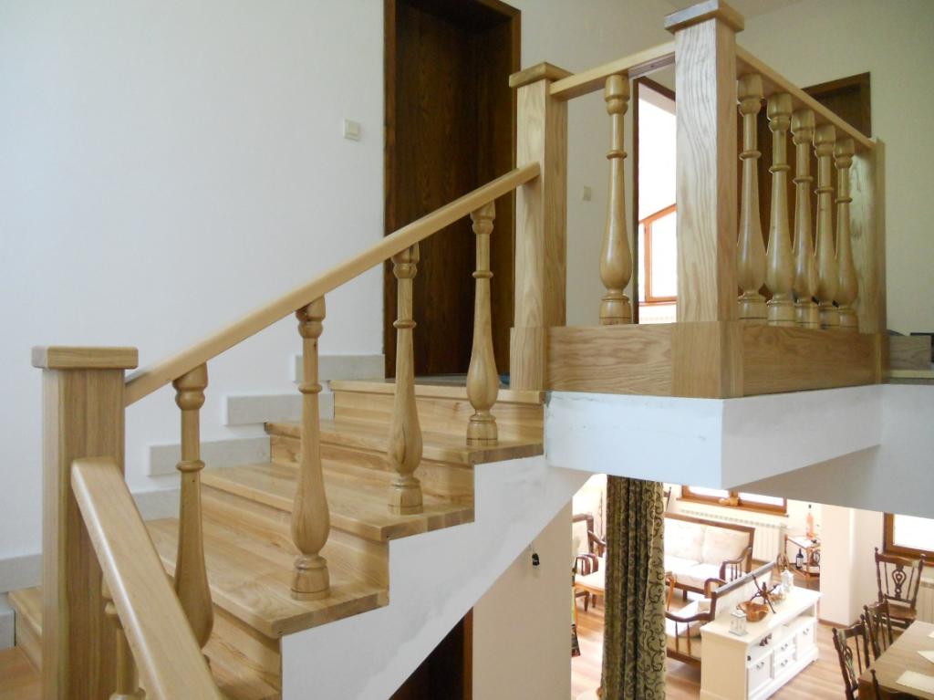 Стълбище с парапет и стъпала от дъб.
