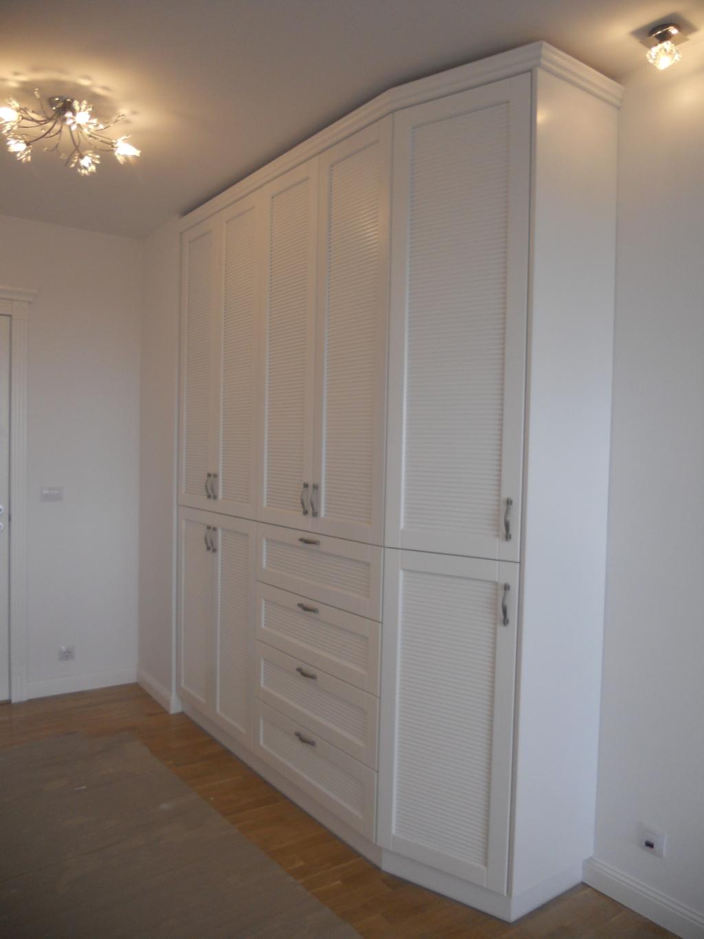 Гардероб от мдф с боя сатен и фрезовани ажурни врати.